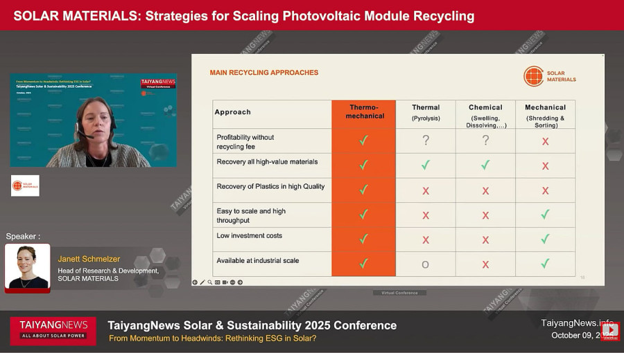 Speaking at the TaiyangNews Solar & Sustainability conference 2025, Janett Schmelzer, Head of R&D at Solar Materials, highlighted that the industry is on the verge of its first major wave of end-of-life solar modules. With early utility-scale and residential installations reaching the end of their functional lifespans, the volume of waste is expected to skyrocket. This shift presents a significant material opportunity; the silver and silicon contained within these modules possess a market value reaching into the billions of euros. Recovering these strategic resources at scale is becoming essential for Europe’s industrial autonomy.